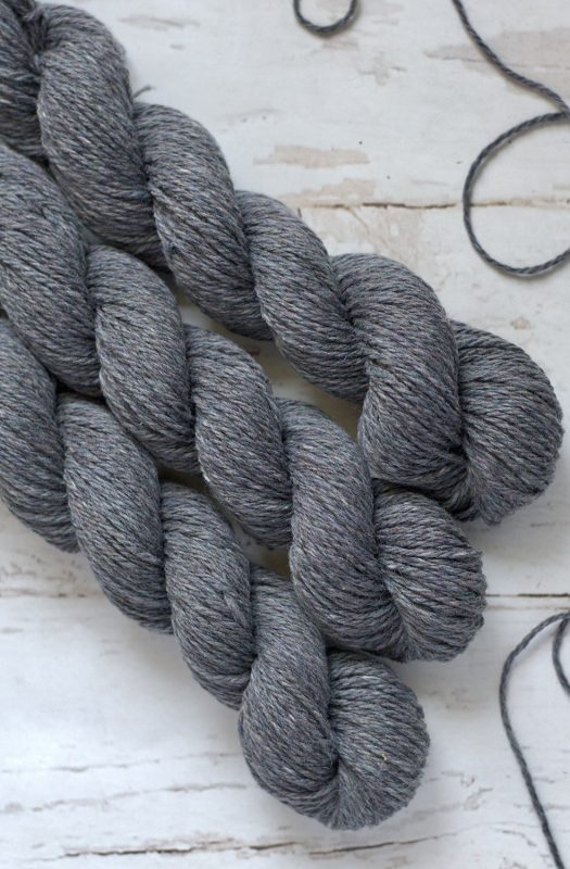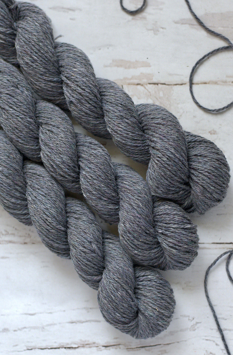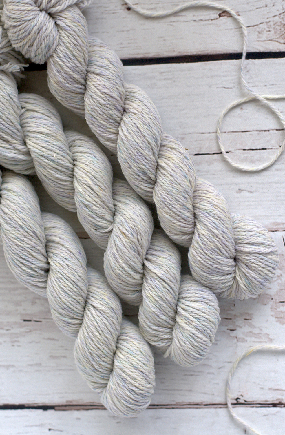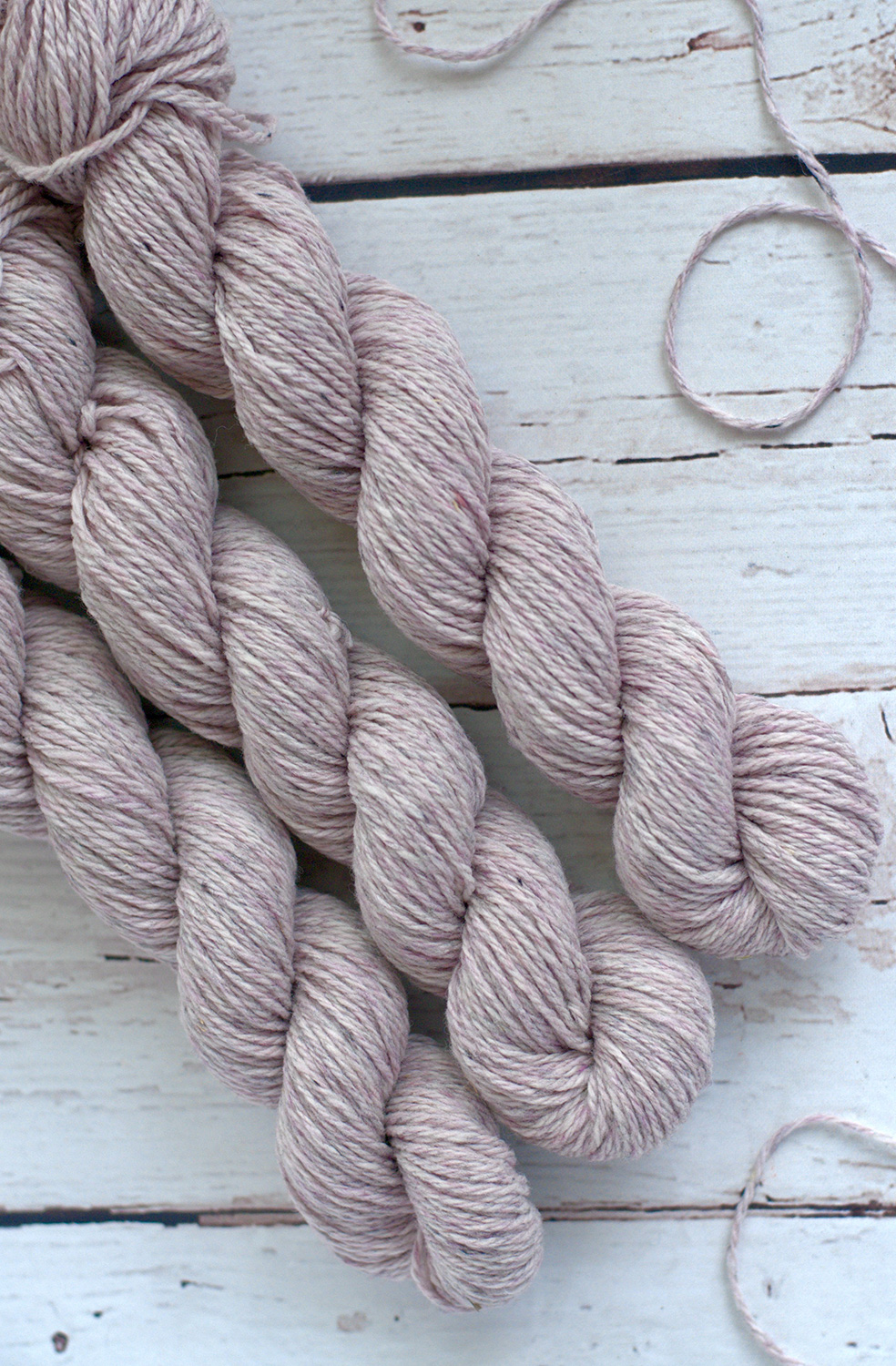Le mélange de soie/lin/laine en grosseur DK a un élégant drapé, qui donne un tissu léger et doux avec beaucoup de texture, et il convient parfaitement aux projets estivaux. Apprenez-en plus sur Lune sur notre blogue.