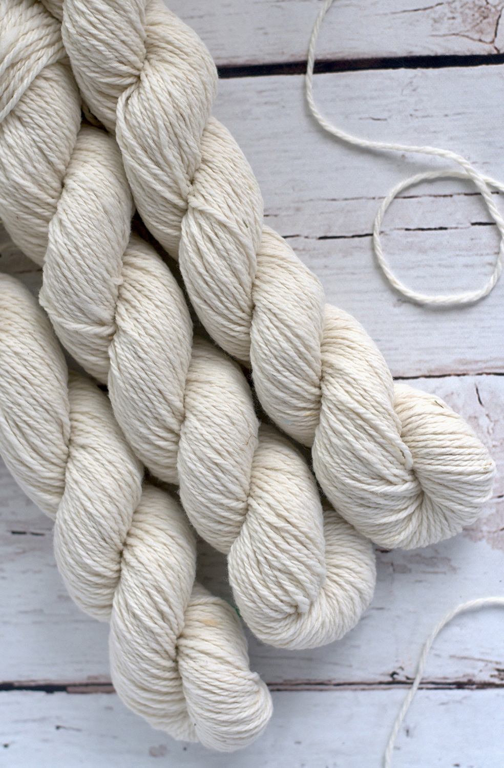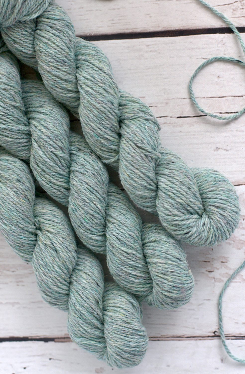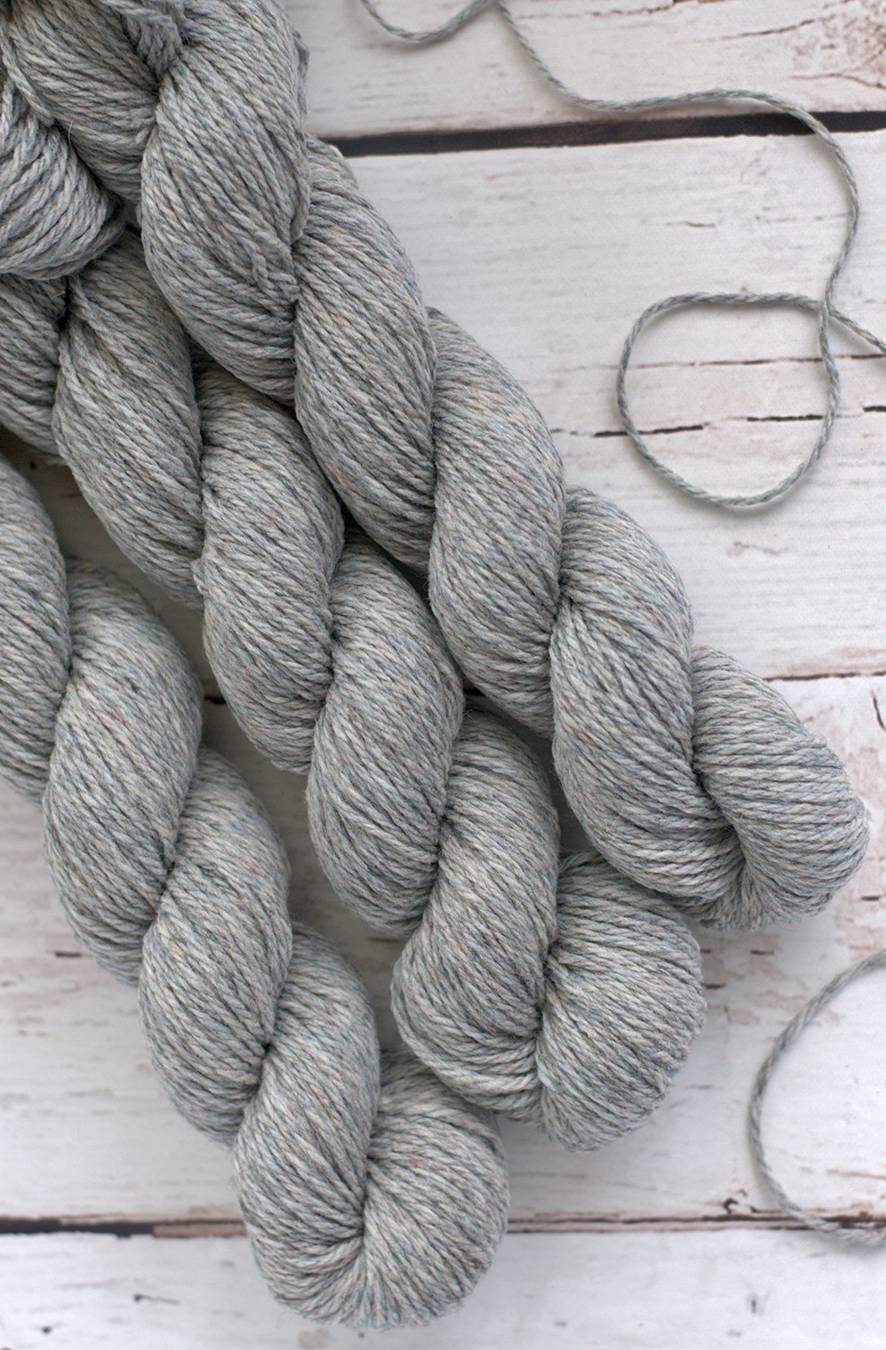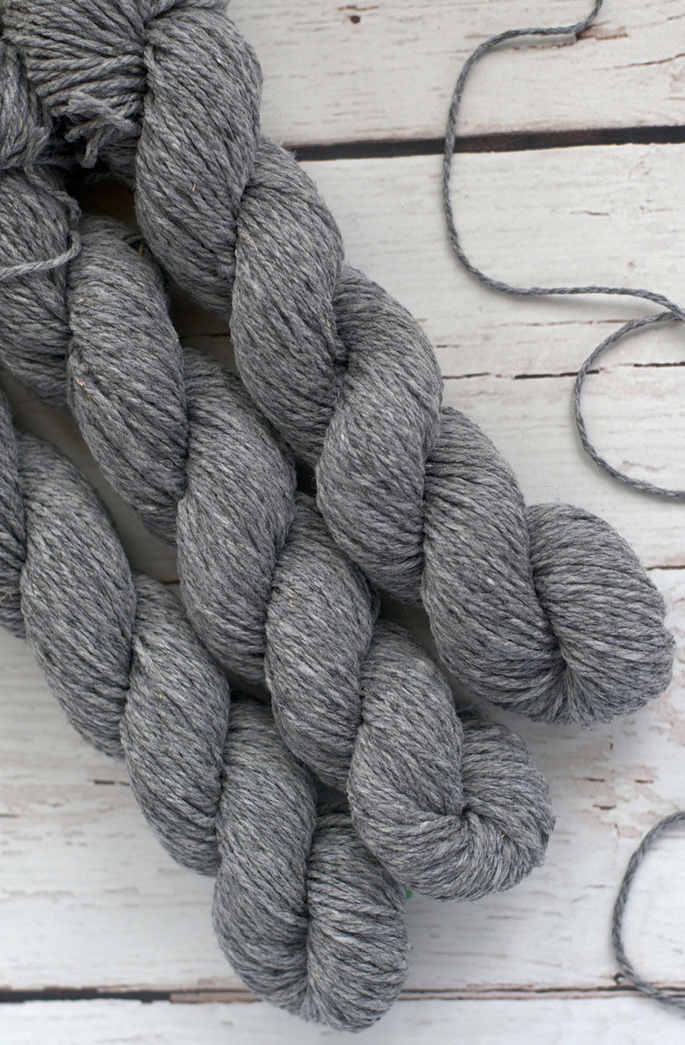 Le mélange de soie/lin/laine en grosseur DK a un élégant drapé, qui donne un tissu léger et doux avec beaucoup de texture, et il convient parfaitement aux projets estivaux. Apprenez-en plus sur Lune sur notre blogue.